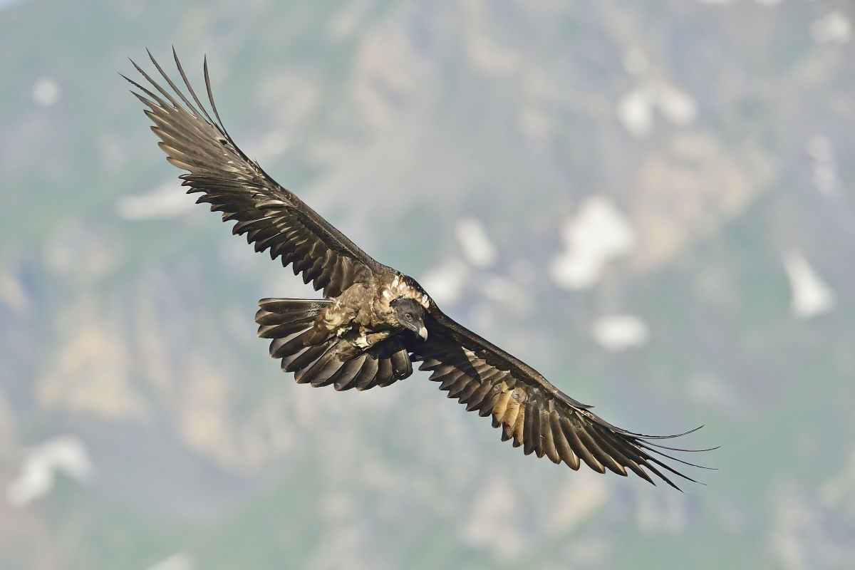 Ein junger Bartgeier auf seinem Erstflug. Foto: weyrichfoto.ch