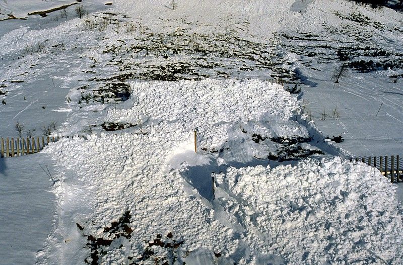 Lawinenabgang in der Versuchsaufforstung 1989: Damals waren die Bäume zu klein, um Abgänge wirkungsvoll zu verhindern. Foto: Walther Schönenberger/SLF