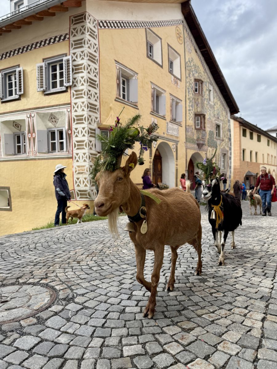 Am Samstag sind die aufwendig geschmückten Ziegen von der Alp nach Ardez heimgekehrt. Begleitet von vielen Schaulustigen wurden die Tiere durch das Dorf geführt und schliesslich beim östlichen Dorfeingang auf einer Wiese eingepfercht. Mit Speis und Trank und Ziegenkäse wurde der Alpabzug gefeiert.