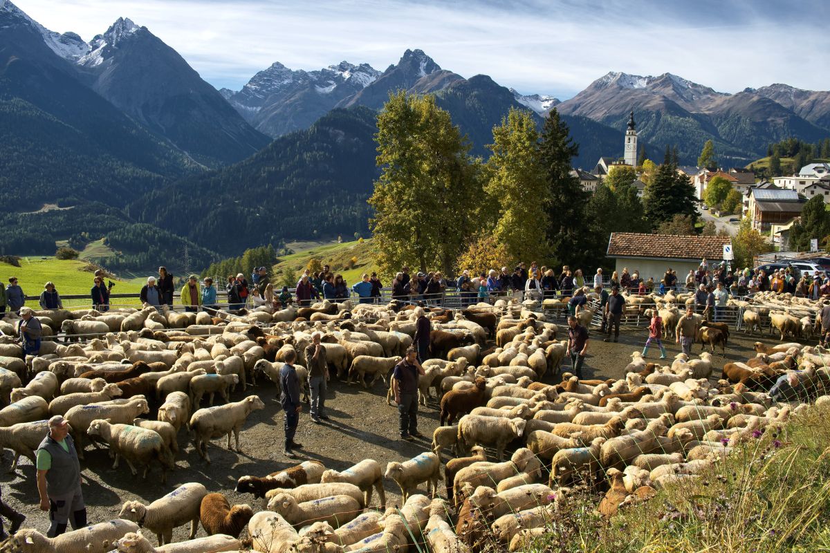 Am frühen Morgen lag noch Nebel über dem Dorf. Auf den Weiden grasten die Schafe, welche mit ihren Lämmern schon heimgeholt worden waren. Gegen halb elf war es so weit. «Sie kommen», wurde von Mund zu Mund dorfaufwärts weitergereicht. Dann waren sie da: 770 Schafe und eine Ziege drängten sich durch die Ftaner Gassen, angeführt von Hirte Damian Bänziger und einigen Kindern. Trotz Frühstück auf den Wiesen vor dem Dorf büxten beim Anstieg nach Ftan Pitschen einige Schafe aus, um noch einmal in ein paar saftige Gräser zu beissen.