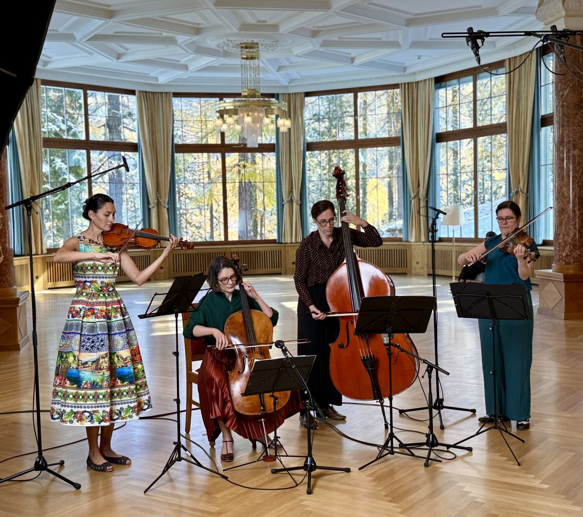 Fast zwei Wochen haben die Dreharbeiten für die Produktion «Waldhausvariationen» der Fränzlis da Tschlin mit Regisseurin Kathrin Siegfried und Regisseur Georg Vogel gedauert. Bis heute spielen die Fränzlis noch im Hotel Waldhaus in Sils. Wie gut diese Kombination passt, zeigt ein Besuch vor Ort.