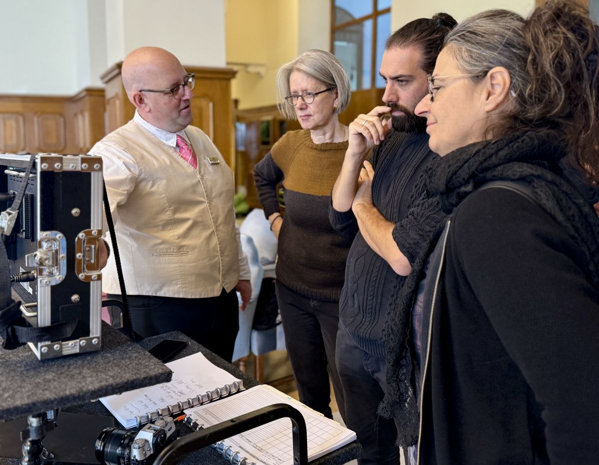 (von links) Georg Vogel und Kathrin Siegfried analysieren eine Szene mit dem Team. Foto: Fadrina Hofmann