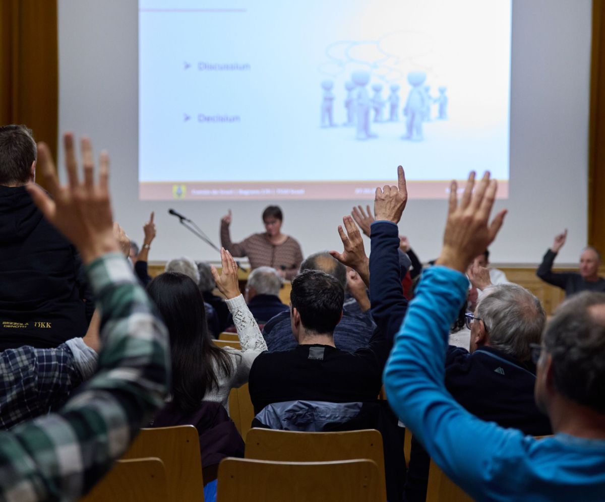 60 da 62 mans sun its sü a favur da la revisiun parziala pro la votumaziun – e cun quai eir a favur dal proget «Paradies Resort» (fotografia: Martin Camichel).