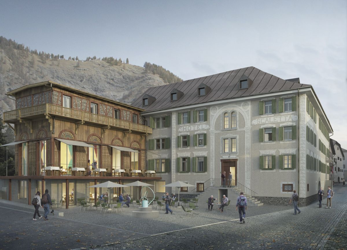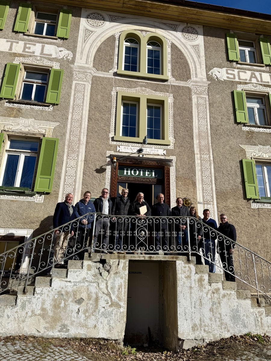 Mit einem symbolischen Spatenstich haben am Freitag die Umbauarbeiten am Hotel Scaletta in S-chanf begonnen. Die Wiedereröffnung des historischen Gasthauses ist für Ende 2027 geplant.