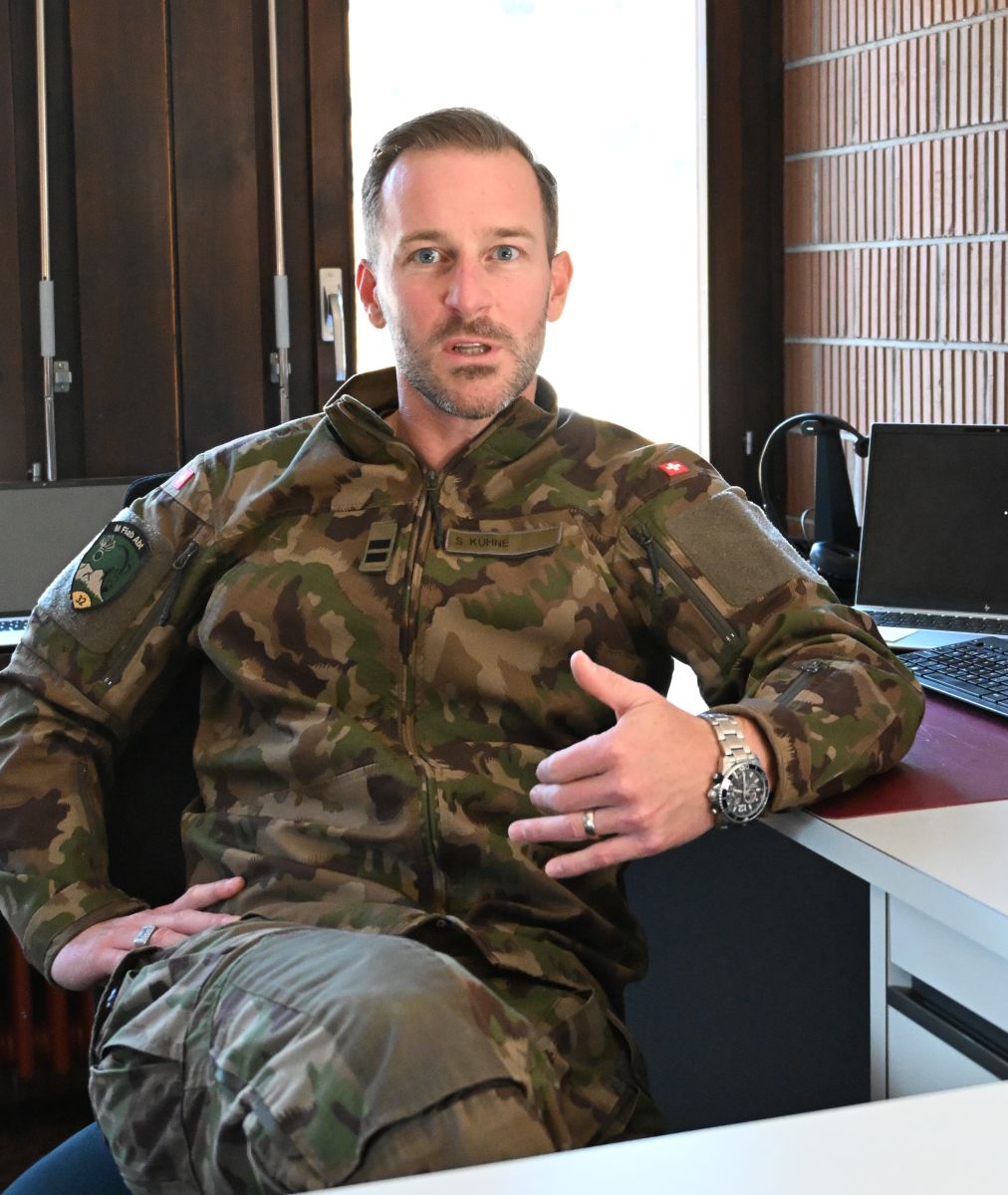 Silvio Kühne ist Berufsoffizier, Oberstleutnant und Kommandant der M Flab, Abt 32. Er sagt, dass der Schiessplatz in S-chanf für die Fliegerabwehr essenziell ist. Foto: Reto Stifel