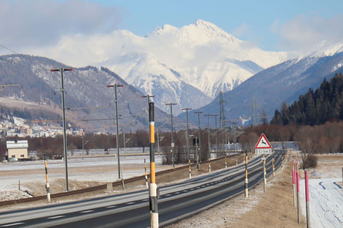 Il traget cuort zieva Bever, inua cha regna ün prievel da collisiuns cun bes-chas. Sün quist traget ho que do düraunt la prüma mited da quist mais quatter accidaints cun sulvaschina (fotografia: Martin Camichel).