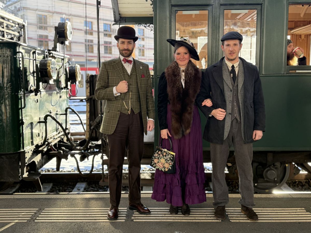 Eine Gruppe mit jungen Leuten in historischen Kleidern fällt besonders ins Auge. Es sind drei befreundete junge Männer und zwei junge Frauen. Einer von ihnen, Maurus Schaffner aus Samedan, ist selbst Lokführer bei der Furkabahn. «Ich habe im Kollegenkreis gefragt, wer Lust hätte, bei dieser Dampffahrt mitzukommen – und da sind wir nun», meint er fröhlich.
