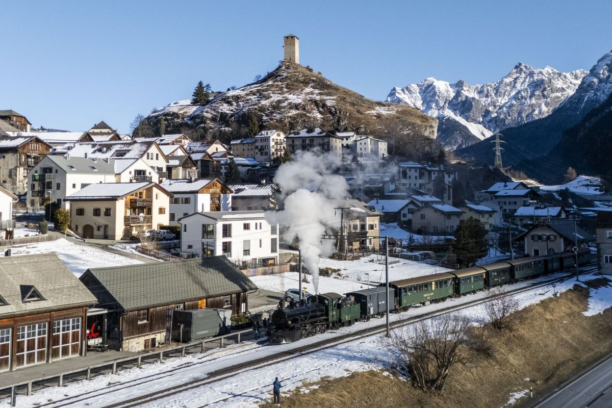 Bahnhof Samedan am Samstagmorgen kurz vor 10 Uhr. Freudige Aufregung herrscht am Bahnsteig, denn die «Engiadina Nr. 108» steht schon bereit zur Abfahrt. Die alte Dame, Jahrgang 1906, wird an diesem Tag von Lokführer Mario Risch geführt, unterstützt von Heizer Martin Balz. Beide sind authentisch im blau-weissem Tenue gekleidet. Sie haben eine spezielle Ausbildung absolviert, zuerst als Heizer und dann die als Lokführer.