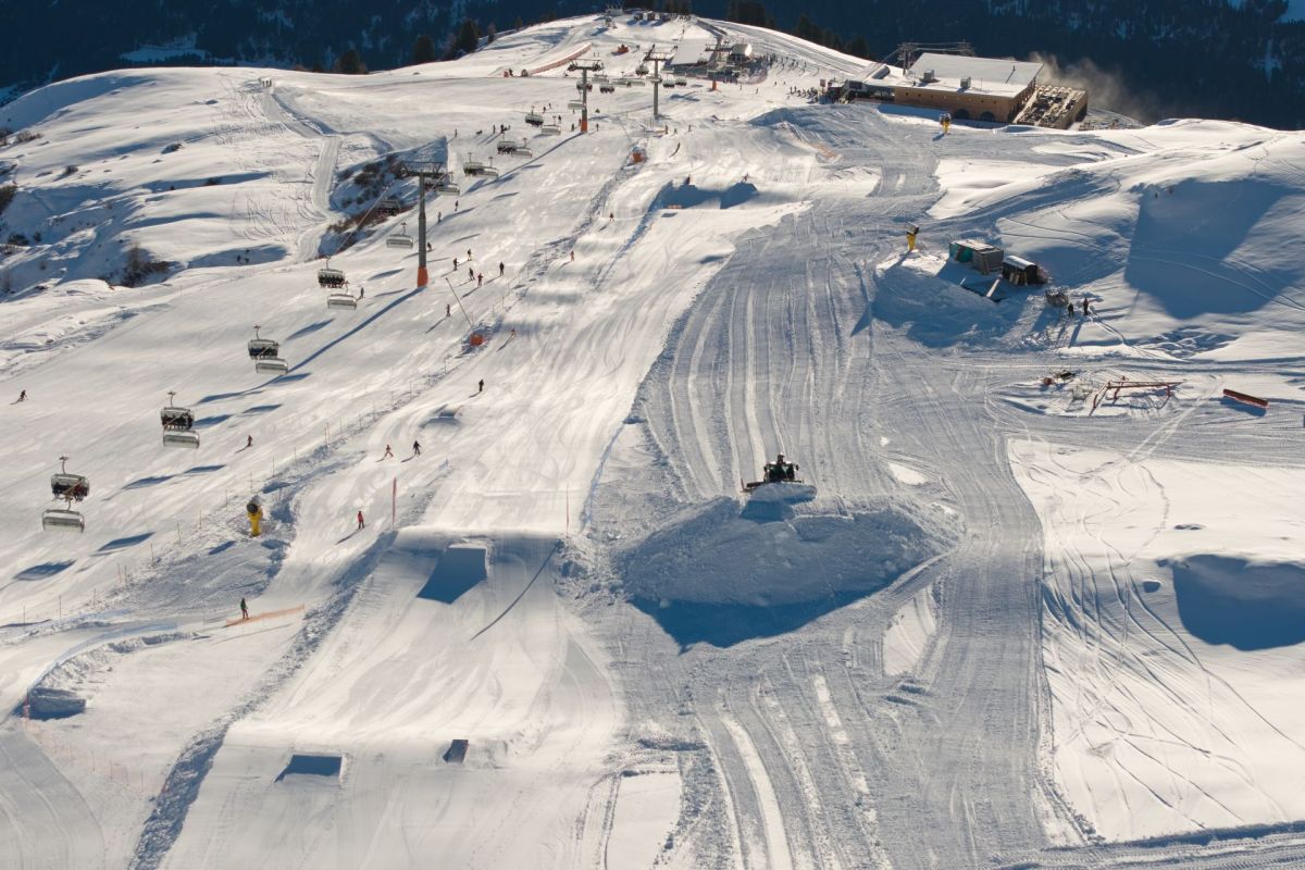 I’l territori da skis Motta Naluns pissera üna squadra da quatter persunas per üna sporta da freestyle per novizas fin atlets ambizius. In lavur manuala e motorisada construischa quella squadra üna pista cun var 45 differents obstaculs. In gir cun Curdin Erni e Nicola Stecher i’l Snowpark Scuol.