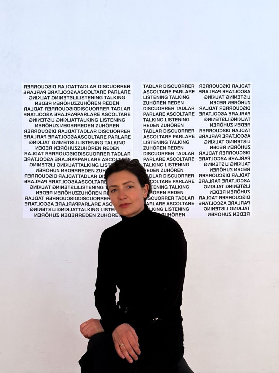Hanna Burkart fa art davart "discuorrer&tadlar". fotografia: Fadrina Hofmann