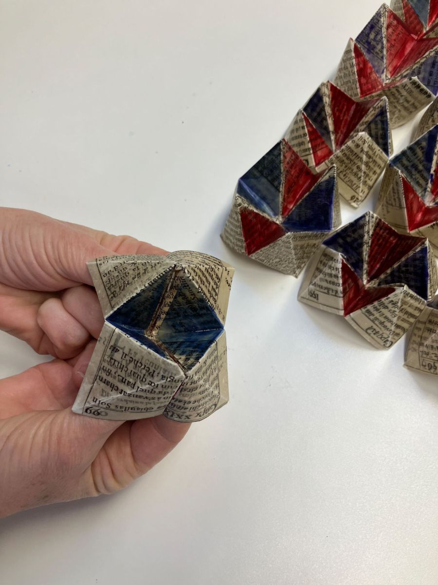 Den Umwandlungsprozess, den Ernestina Abbühl einer alten, halb zerstörten Bibel hin zum fertigen Reliefwerk «urazchun – tschêl ed infiern» unterzog, war lang und erforderte viel Geduld. Foto: Ernestina Abbühl