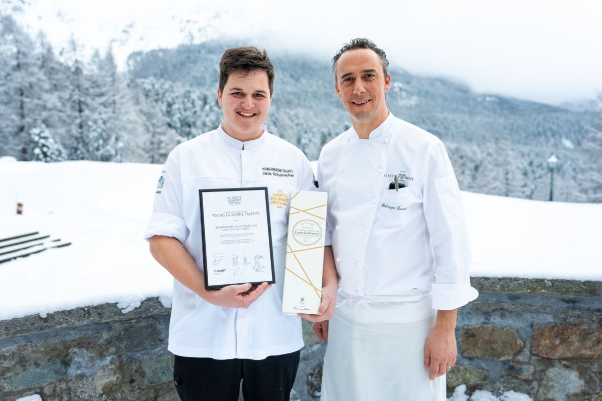 Sieger Yanis Schumacher mit Executive Chef Fabrizio Zanetti vom Suvretta House. Foto: Steve Hadorn