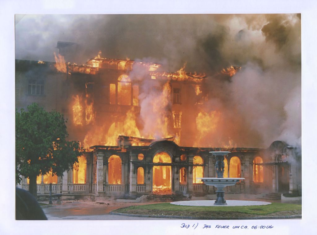 Von der Kamera begleitet, beginnen die zwei älteren Herren, Indizien zu sammeln, mögliche Brandursachen und Täter zu durchleuchten, lose Fäden zu verknüpfen. Ihre Suche wird im Film mit historischen Aufnahmen ergänzt. Mithilfe von alten Fotos und Filmmaterial taucht der Zuschauer in eine Zeit ein, als Vulpera noch ein pulsierender Touristenort war, das Hotel voller Leben und sogar Vico Toriani mit «Buna saira, buona sera» dem Grandhotel ein Lied widmete. «Und Gast um Gast fährt ein ...». Originalsequenzen während des Brandes, aufgenommen von Radiotelevisiun Svizra Rumantscha und private Aufnahmen von Cla Vital und Karl Andersag zeigen das Ausmass der Verwüstung am Tag des Geschehens – und eine Moderatorin, die fassungslos vor den rauchenden Trümmern steht und sagt: «Ein bedeutendes Engadiner Bauwerk, welches unter Denkmalschutz stand, ist komplett zerstört.»