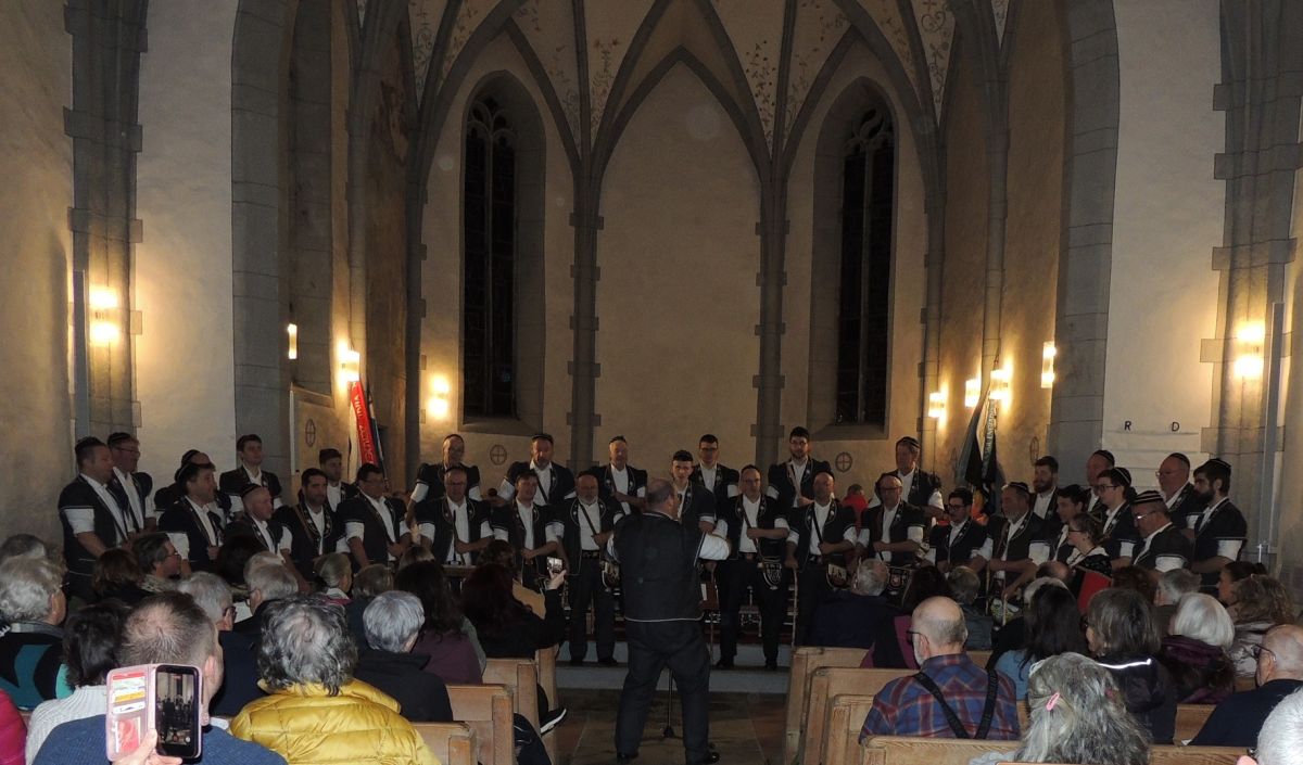 Il Choeur des Armaillis de la Gruyèreils ed il Cor dal Parc Naziunal insembel han chantà la chanzun da las muntognas da la cumponista Nina Mayer (fotografia: Benedict Stecher).