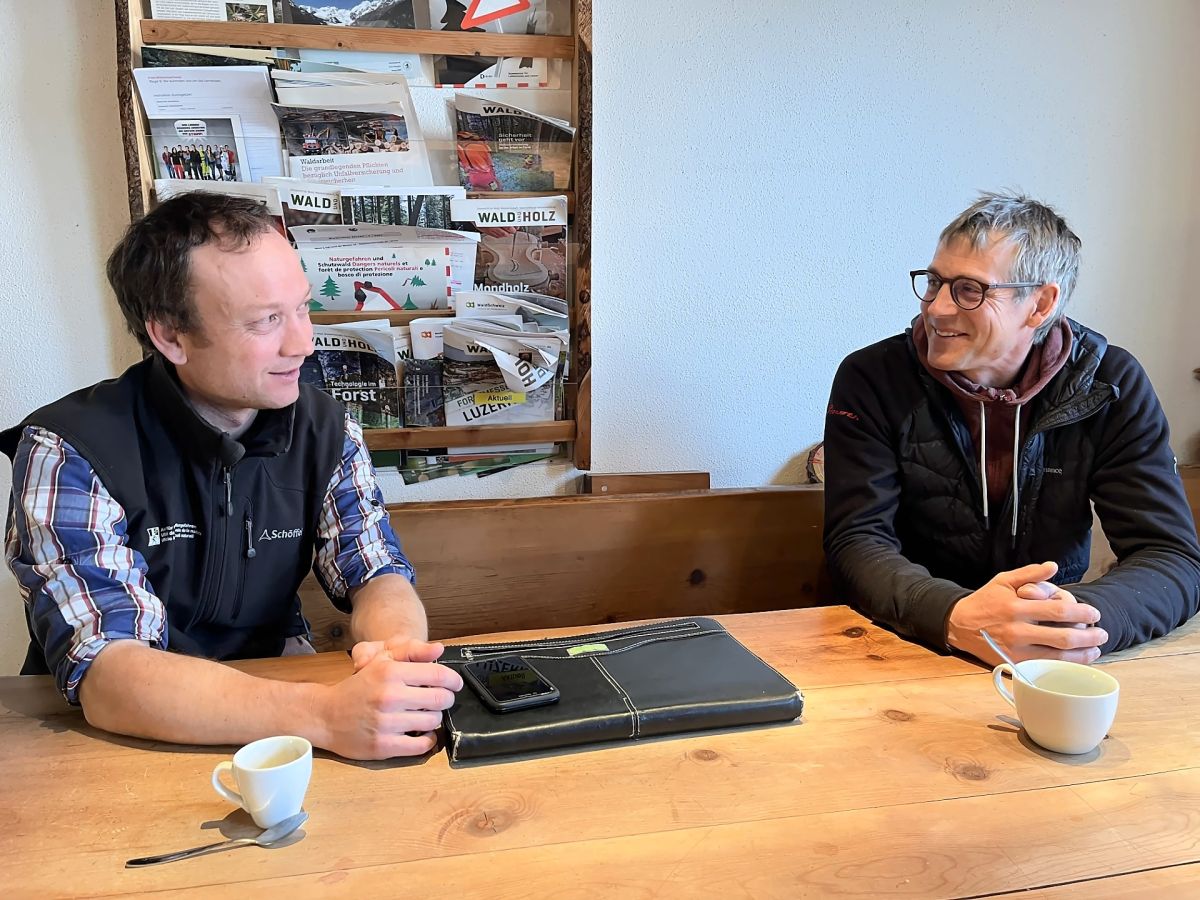 Martin Keiser (links im Bild) und Corado Vondrasek tauschen sich vor allem, wenn es um Lawinen geht, häufig aus. Foto: Andrea Gutgsell