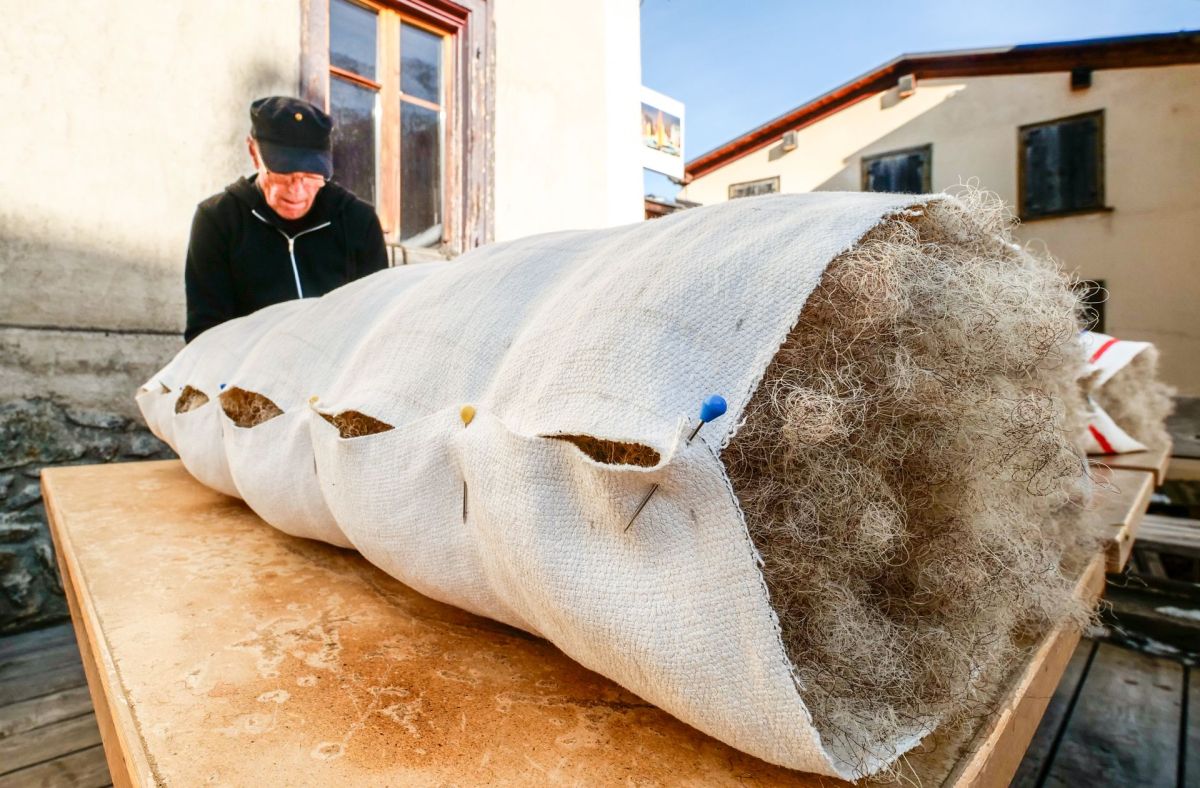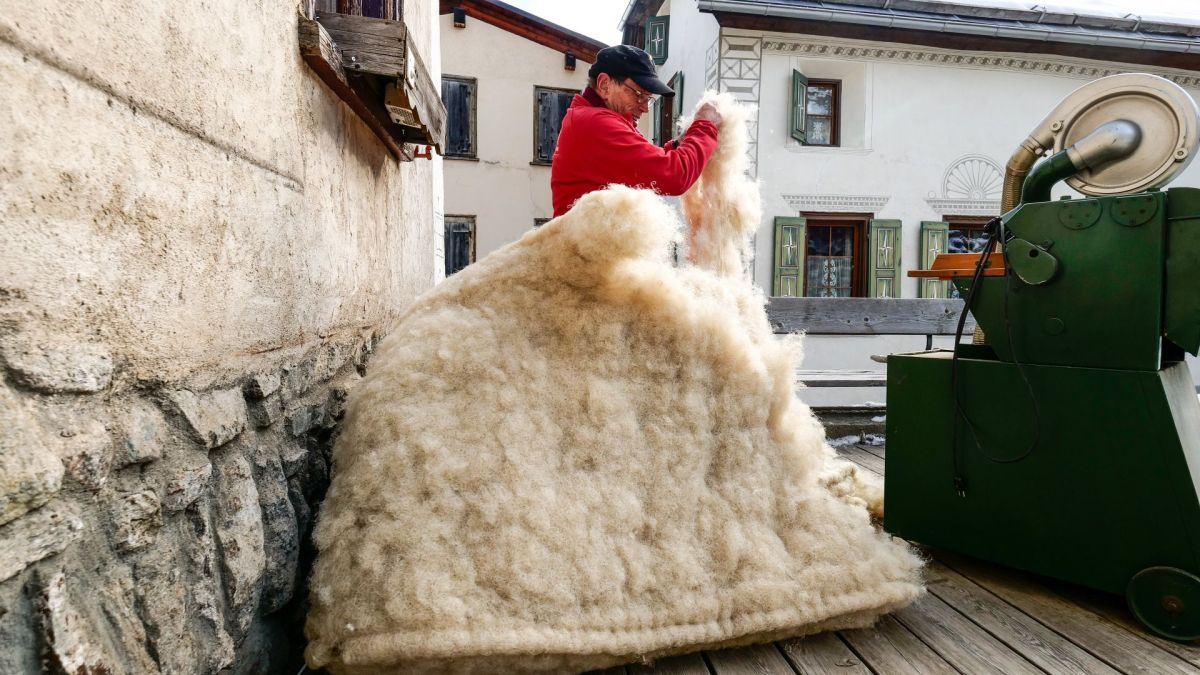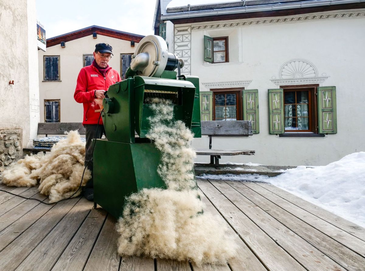 Das Pilotprojekt einer mobilen Matratzen-Werkstatt in Lavin zeigte den Weg einer alten, ausgedienten Rosshaarmatratze auf, hin zu einer neuen Matratze der Edition Suisse. Foto: Jon Duschletta