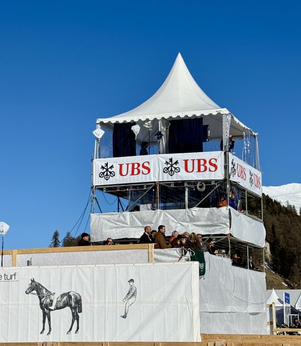 Im Speakerturm auf dem gefrorenen St. Moritzersee hat Markus Monstein definitiv den Platz mit der besten Aussicht. Von hier aus sieht er auf die gesamte Rennbahn, unterstützt von einem TV-Monitor und seinem Feldstecher. Markus Monstein ist seit 25 Jahren Speaker an verschiedenen Pferderennen in der Schweiz. Den White Turf bezeichnet er als «das schwierigste Rennen», je nach Licht- und Schneeverhältnissen. An diesem zweiten Rennsonntag scheint die Sonne am stahlblauen Himmel so stark, dass ohne Sonnenbrille nichts geht. Es gibt wohl schlimmere Arbeitsorte. Allerdings ist im Gegenlicht aus der Ferne schwer auszumachen, welches Pferd führt oder aufholt. Da hilft der Spickzettel mit Namen der Pferde, Trikotfarben und je nach Rennen Fahrer wenig.
