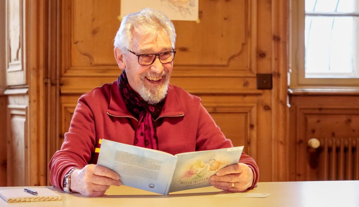 Am Montag fand im Schloss Planta-Wildenberg in Zernez eine Buchvernissage statt, Autor Alfred A. Weber las aus seinem Buch. Er und Miriam Caligari (Foto oben links), die einige der Aquarellzeichnungen aus dem Buch im Original zeigte, gaben danach eine Signierstunde. Unter der Anleitung von Webers Ehefrau, Heidi Weber-Schlegel, und unter der tatkräftigen Mithilfe von fünf Freiwilligen inszenierten die beiden ein kleines Rollenspiel mit den Hauptprotagonisten des Buches, den Wassertropfen «Aqui», «Gasi», «Auali», «Spritzi» und «Limi». Der 80-jährige Alfred A. Weber, er stammt ursprünglich aus Deutschland und lebt seit seiner Pensionierung im Unterengadin, betonte, im Buch gehe es um Tapferkeit, um Mut, aber auch um Freundschaft und Hilfsbereitschaft: «Die fünf Wassertropfen zogen zu fünft los und werden auch zu fünft am Ziel ankommen», verriet er und liess dabei durchblicken, dass die fünf Tropfen-Figuren auf ihrer Reise zum Meer nicht nur viele Hindernisse zu überwinden haben, sondern auch, dass die Reise von Wassertropf «Limi» nur über Umwege zu einem Happy End führt. Ein Buch, das Kindern und auch Erwachsenen die Bedeutung von Wasser näherbringen und auch auf das Thema Wasser im Allgemeinen sensibilisieren möchte. Über den QR-Code gelangen Sie zum Online-Büchershop von Gammeter Media.