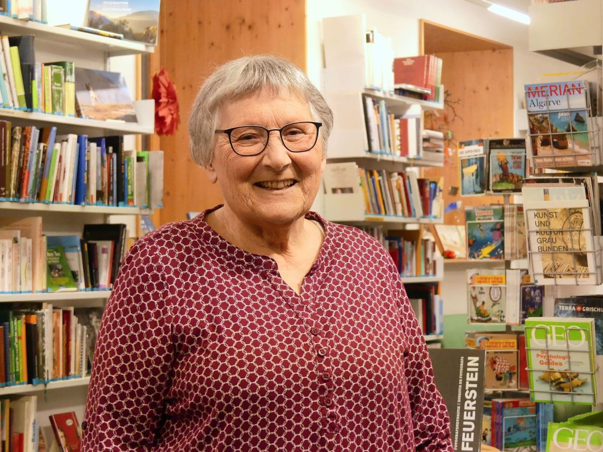 Elisabeth Poo – l’unica bibliotecara chi’d es amo activa daspö la fundaziun da la biblioteca, l’on 1981 (fotografia: Dario Müller).