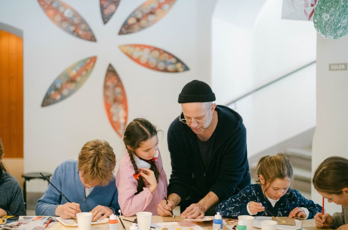 Der Kunstmaler Gideon Rubin während des Workshops mit einheimischen Schülerinnen und Schülern im Engadiner Museum in St. Moritz. Foto: Katja Meuli