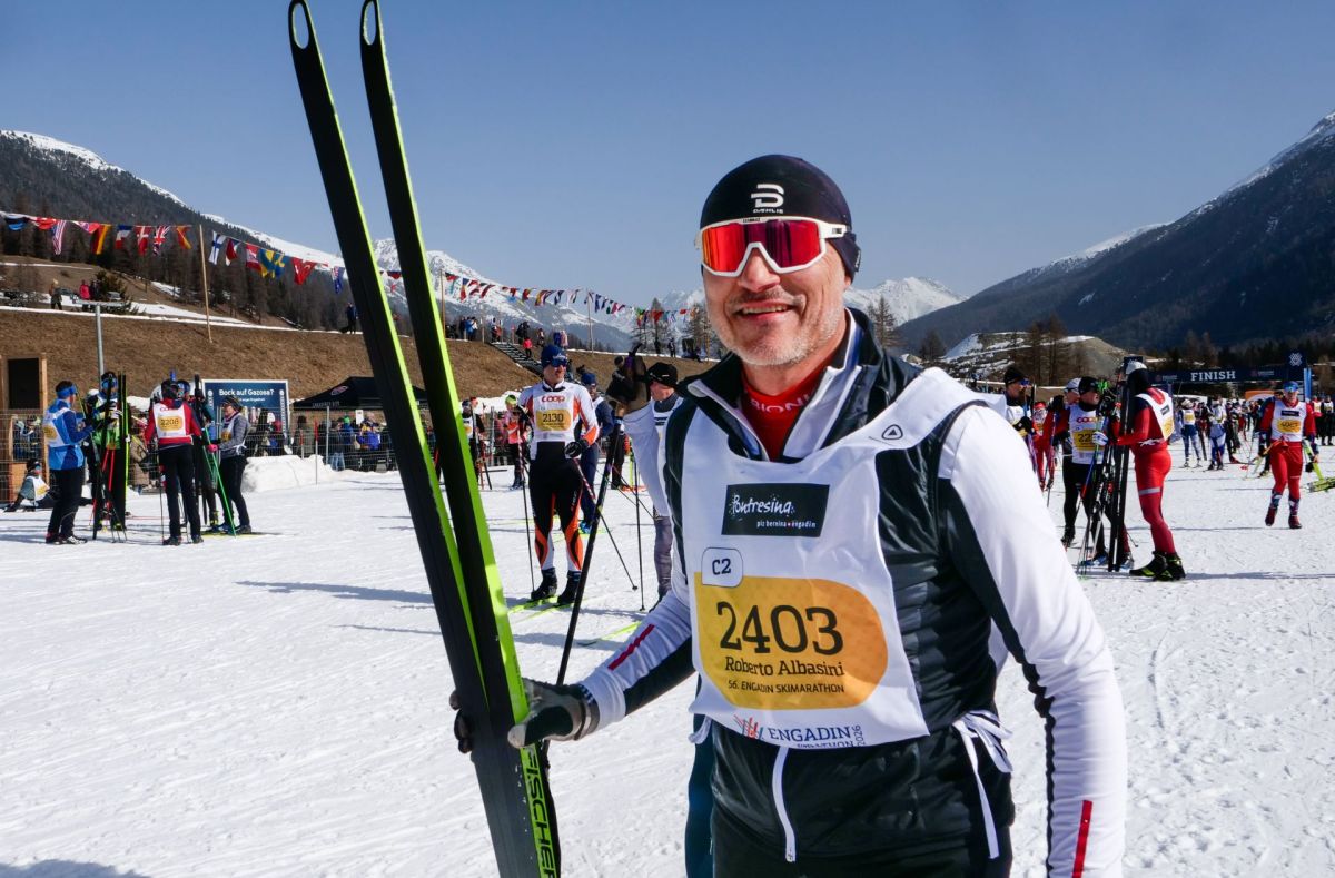 Ein zufriedener RhB-Direktor Renato Fasciati nach seinem 20. Engadiner. "Ich bin schon schneller gelaufen, bin aber zufrieden. Es war sehr gutes Wetter und eine super Stimmung." Foto: Jon Duschletta