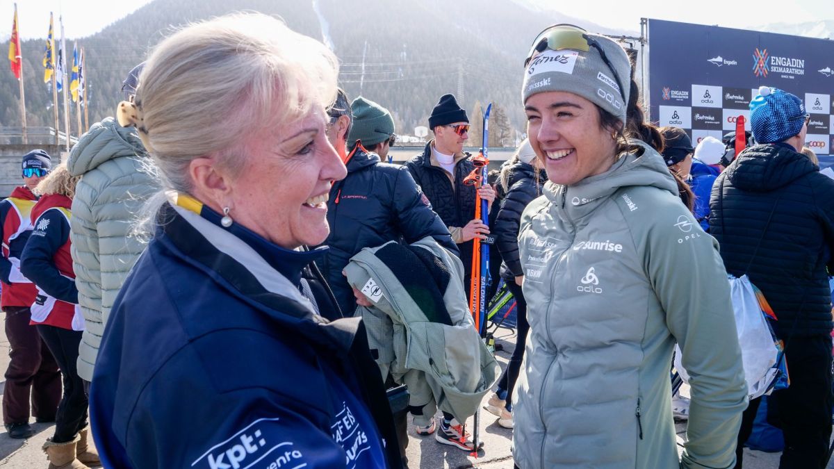 Die Präsidentin des Bündner Skiverbands, Barbara Janom Steiner, im Gespräch mit der Zweitplatzierten Giuliana Werro. Foto: Jon Duschletta