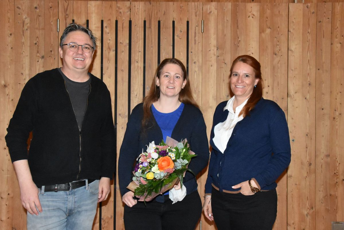 Il president da la Società da commerzi e mansteranza Engiadina Bassa, Jon Armon Strimer, ha ingrazchà ad Yvonne Rauch per sia lavur in suprastanza ed ha bivgnantà a la successura Heidi Laurent-Domenig (a dretta) (fotografia: Nicolo Bass).