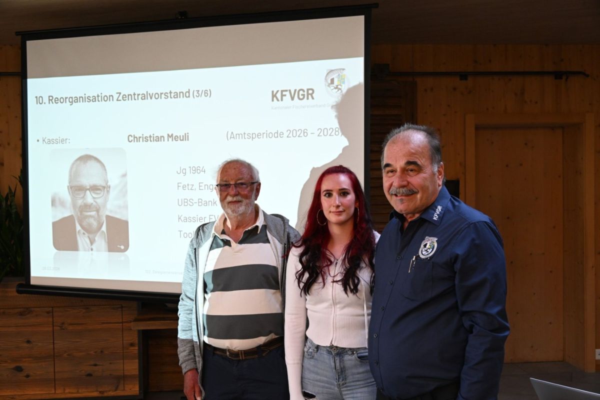 Der Kantonalvorstand: Kassier Christian Meuli (abwesend), Beat Lanz (Regionenvertreter), Domenica Battaglia (Kommunikation) und Präsident Radi Hofstetter. Foto: Walter Candreia/Bündner Fischer