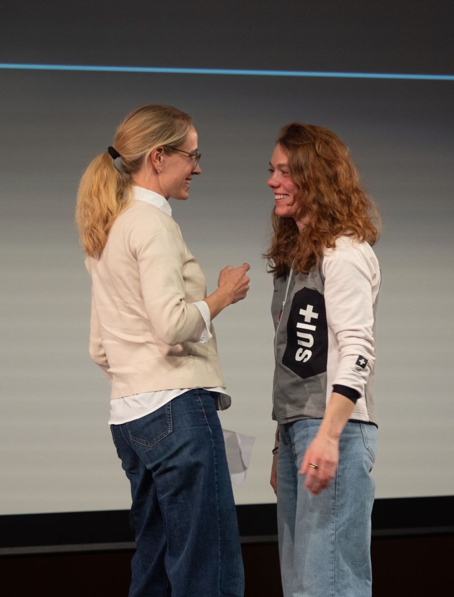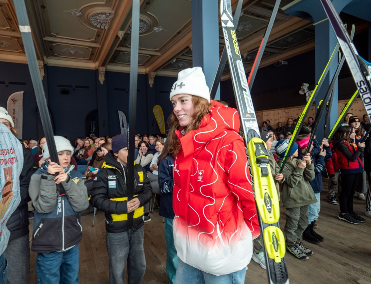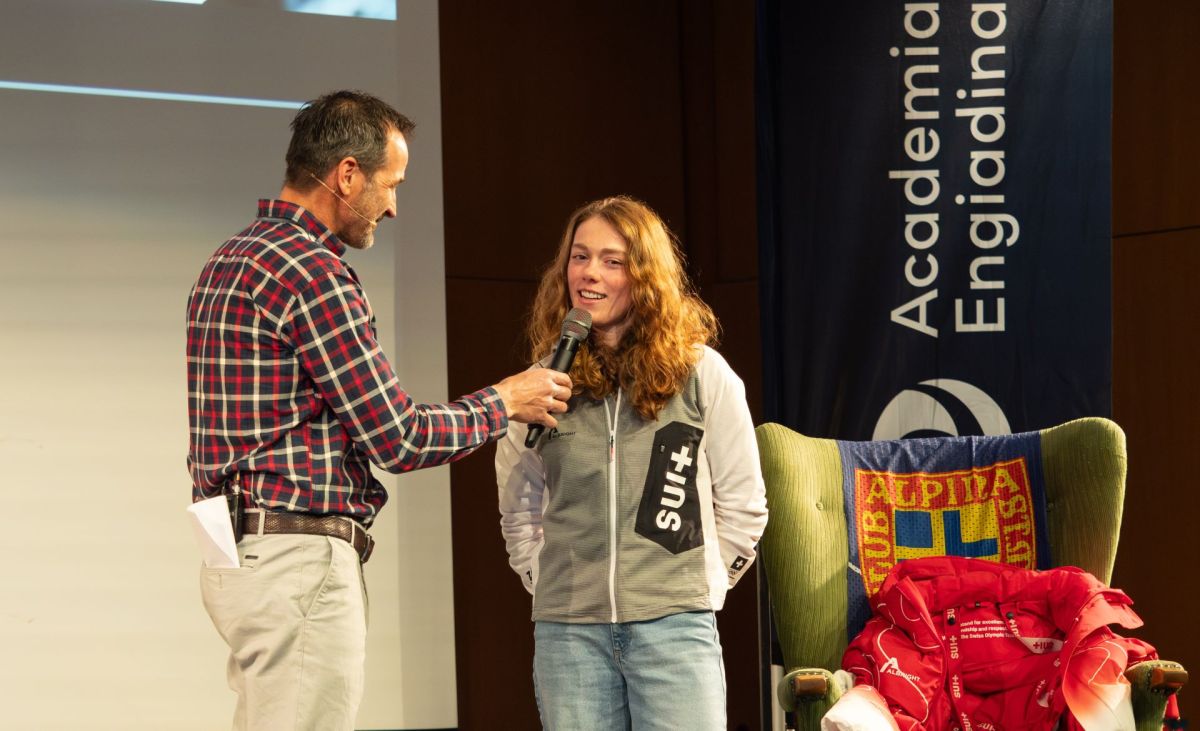 Tamara Wolf (Swiss Ski) im Gespräch mit Nadja Kälin. Foto: Jon Duschletta