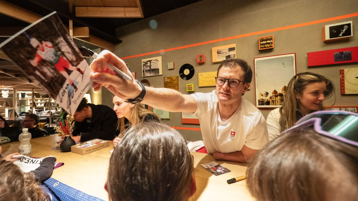 Parasportler Luca Tavasci bei der Autogrammstunde. Foto: Jon Duschletta
