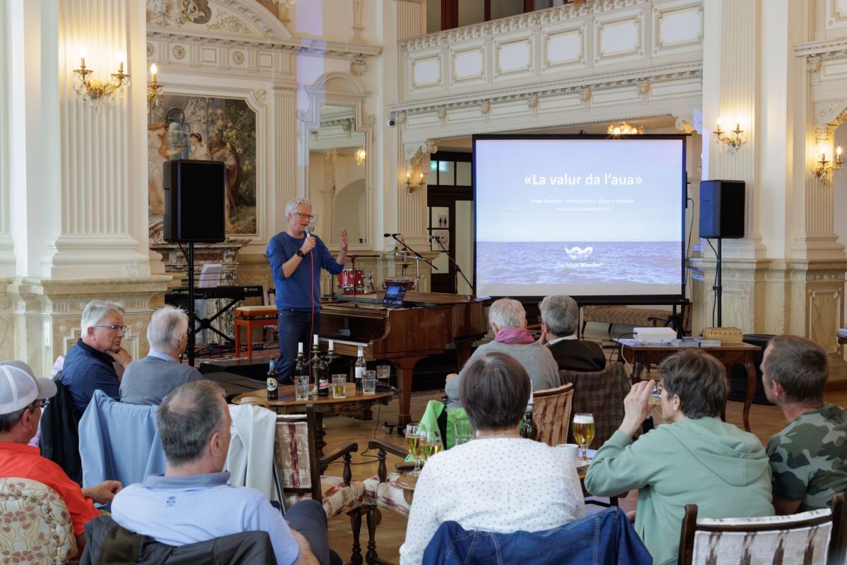 Cinzia Regensburger ha organisà ün arrandschamaint da Viva la musica i’l hotel Scuol Palace a favur da la Büvetta a Nairs. Il cumanzamaint a fat Paulin Nuotclà (fotografia: Dominik Täuber).