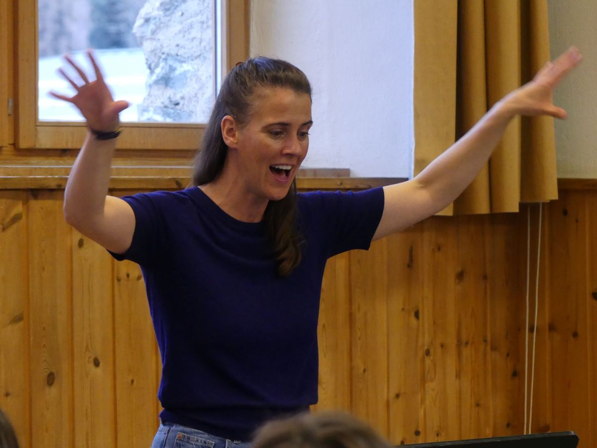«Chantar es sport!» e diriger eir – Nina Mayer cun corp ed orma vi dal filar amo las ultimas finezzas (fotografia: Dario Müller).
