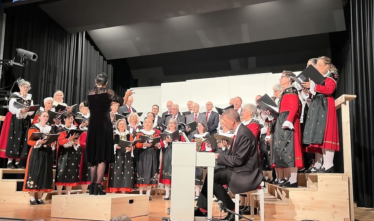 Zum ersten Mal präsentierte sich der Cor Mixt Champfèr auf dem neu erstellten Chorpodium. Foto: Andrea Gutgsell