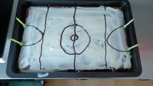 Mmmm... Lecker! Ein Hockeyfeld als Dessert. Die 4. Klasse aus Samedan ...